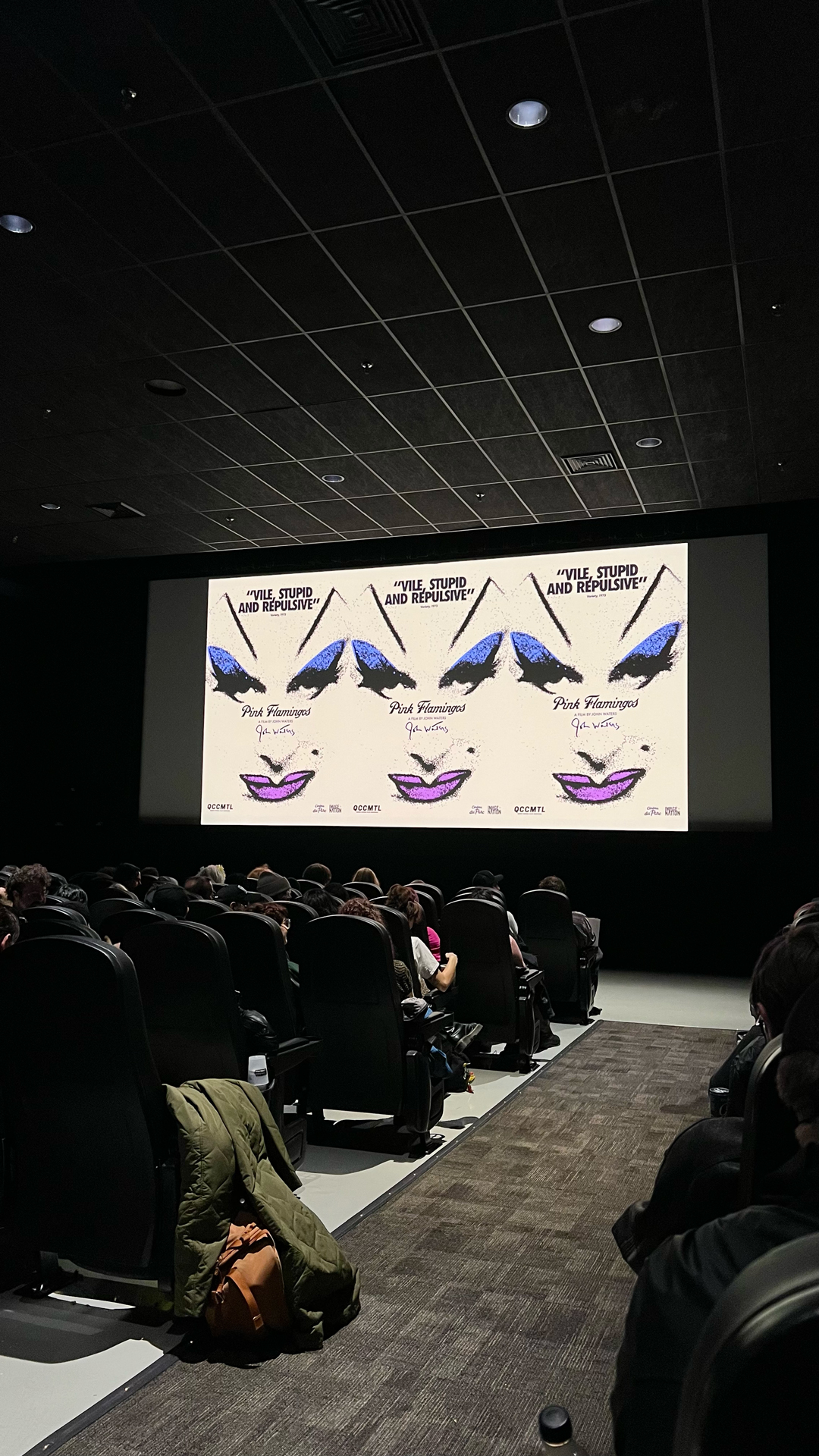 Poster for Queer Cinema Club Montreal’s screening of Pink Flamingos (1972) at Cinema Du Parc.