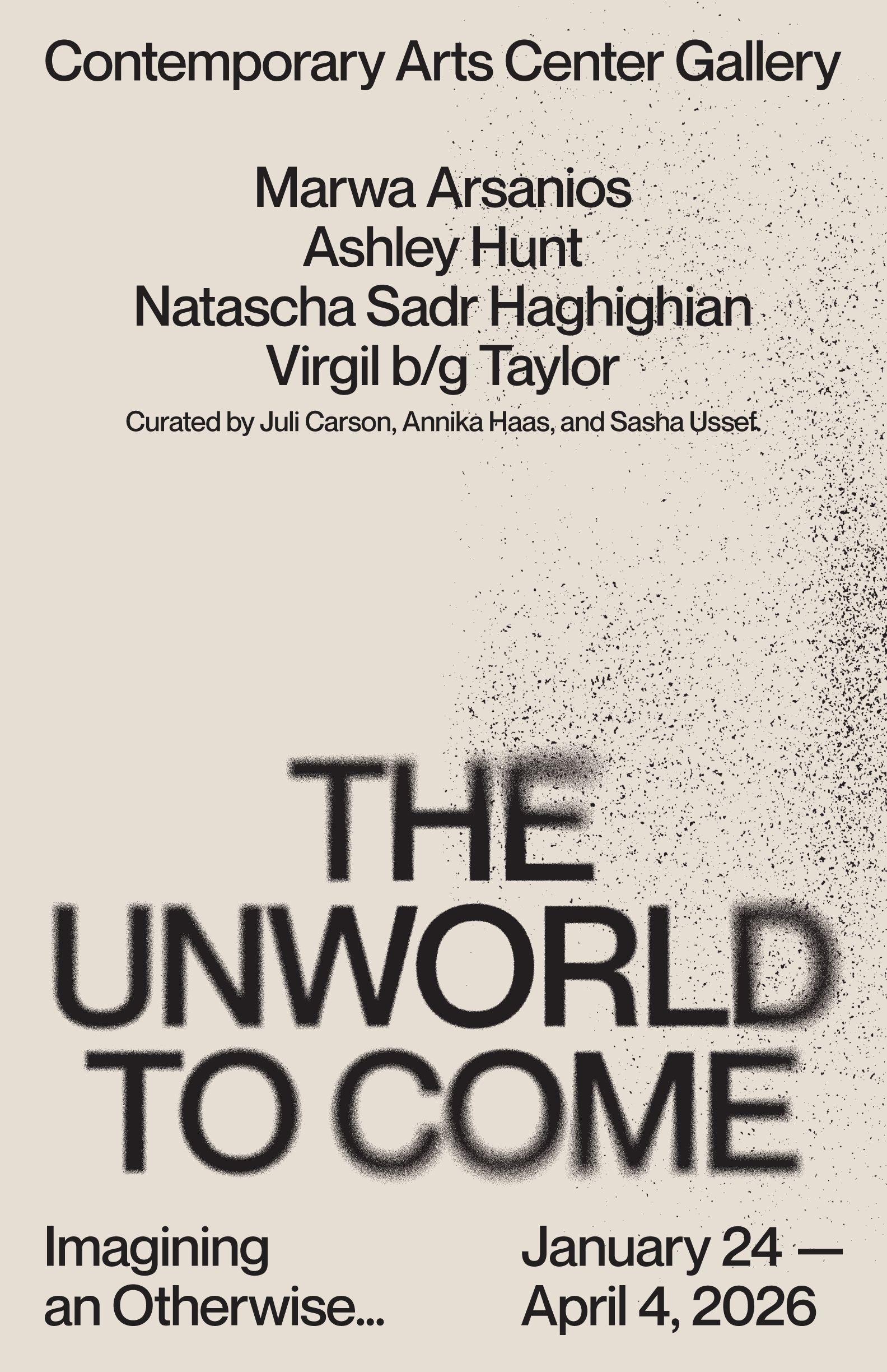 Poster/pamphlet for the exhibition “The Unworld to Come. Imagining an Otherwise…” at Contemporary Arts Center Gallery, University of California, Irvine.